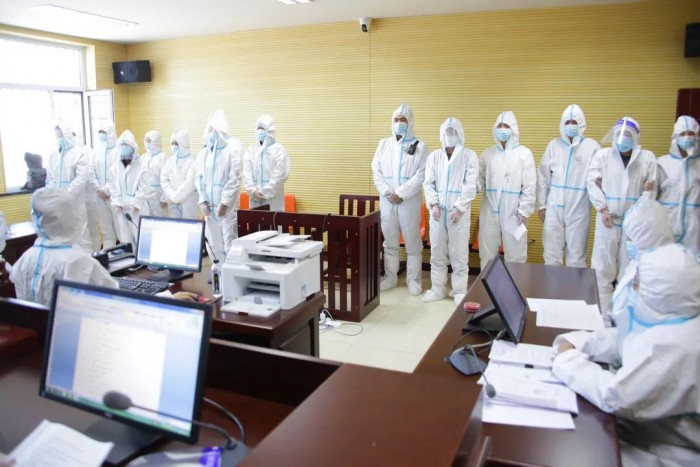 因受疫情影响,目前我区各地监管场所实行封闭制管理,采取了一系列的严格防疫防控措施,法院正常开庭审理案件将无疑给监管场所疫情防控带来风险。为确保疫情防控工作和审判质效两不误,保障在押人员健康权益和诉讼权益,保证刑事审判案件能够正常有序审理,全区法院积极开展应对新冠肺炎疫情防控工作下开展刑事诉讼活动的务实举措。全区两级法院在全面抗击疫情的同时,将继续提升案件审理质效,为坚决打赢疫情防控阻击战和维护社会稳定提供有力的司法保障。